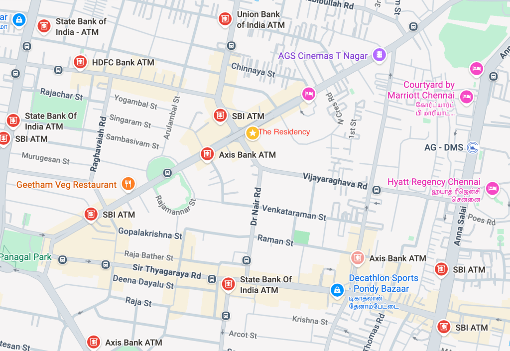 MAP – ATMs near The Residency hotel, Chennai