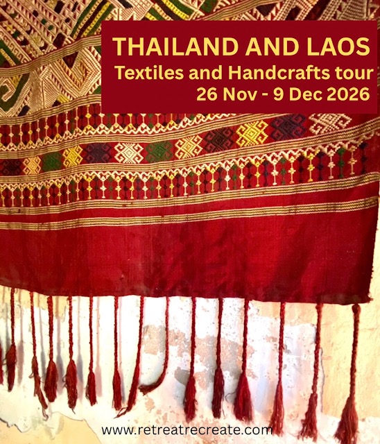 Join us as we journey from Chiang Mai to Luang Prabang and explore the fascinating textile, handcraft and cultural traditions of the ethnic communities of beautiful northern Thailand and Laos: Hmong batik, embroidery and weaving; Karen back-strap loom weaving; Lisu patchwork, appliqué and basketmaking; kheuapiad (jungle vine) fibre craft; indigo and natural dyeing; eco-printing; Tai Lue silk weaving; bamboo basketry; SIX hands-on workshops; traditional ethnic costumes, a private textile collection, textile galleries, fabulous textile markets, artisan studios, textile villages, temples, spectacular scenery, a Mekong River cruise and delicious local cuisine. Plus much, much more!